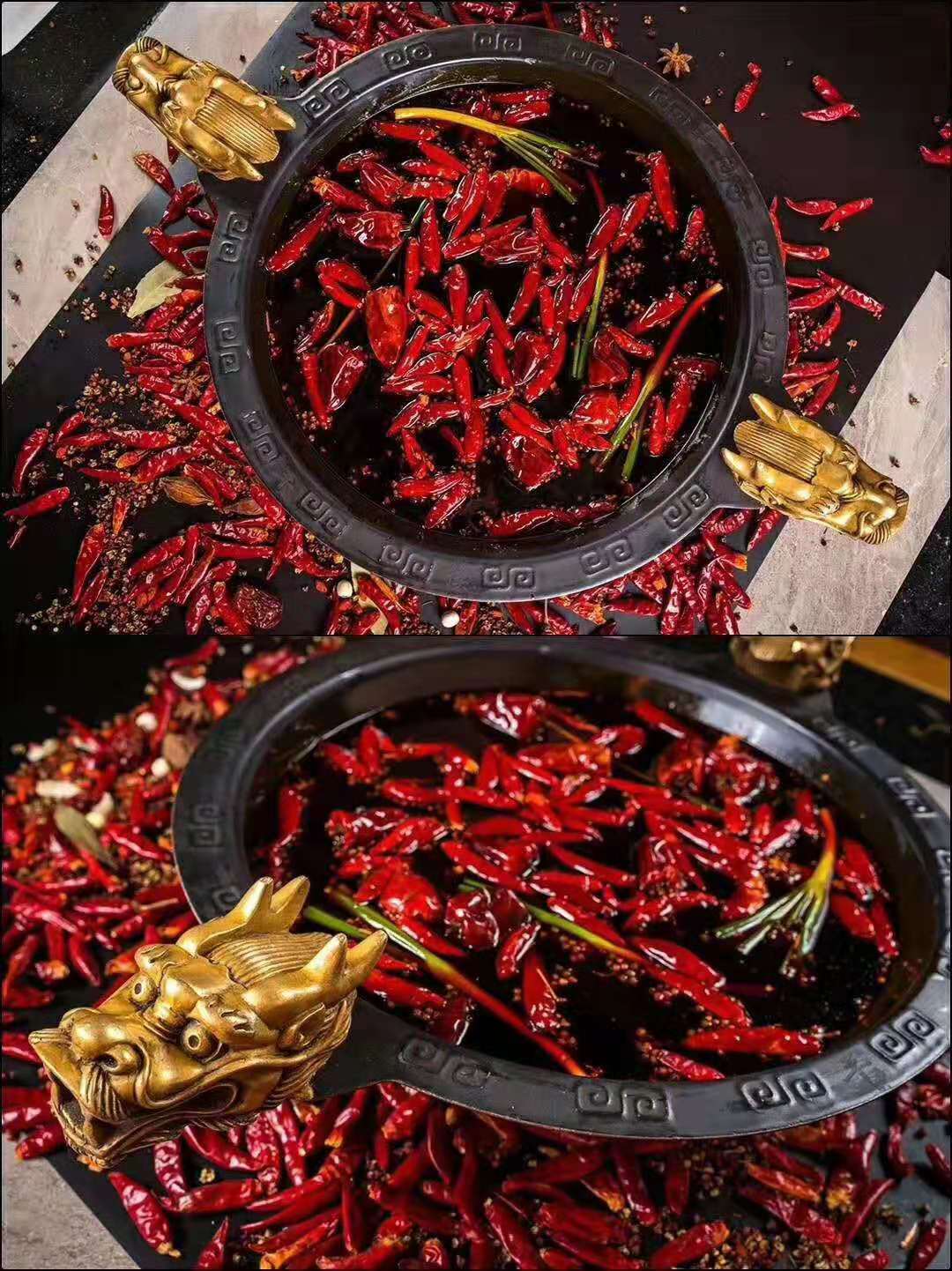 而成都火鍋則香味更加突出,在辣椒和花椒同時(shí)存在的情況下,使用了更多的香料,在綜合和麻辣味道的同時(shí),突出了香料的香味,而成都火鍋在牛油的使用上面也有所差異,會(huì)有色拉油和菜籽油的出現(xiàn),讓整體的感受少一些牛油帶來的葷腥的味道,香味更加的容易出來。