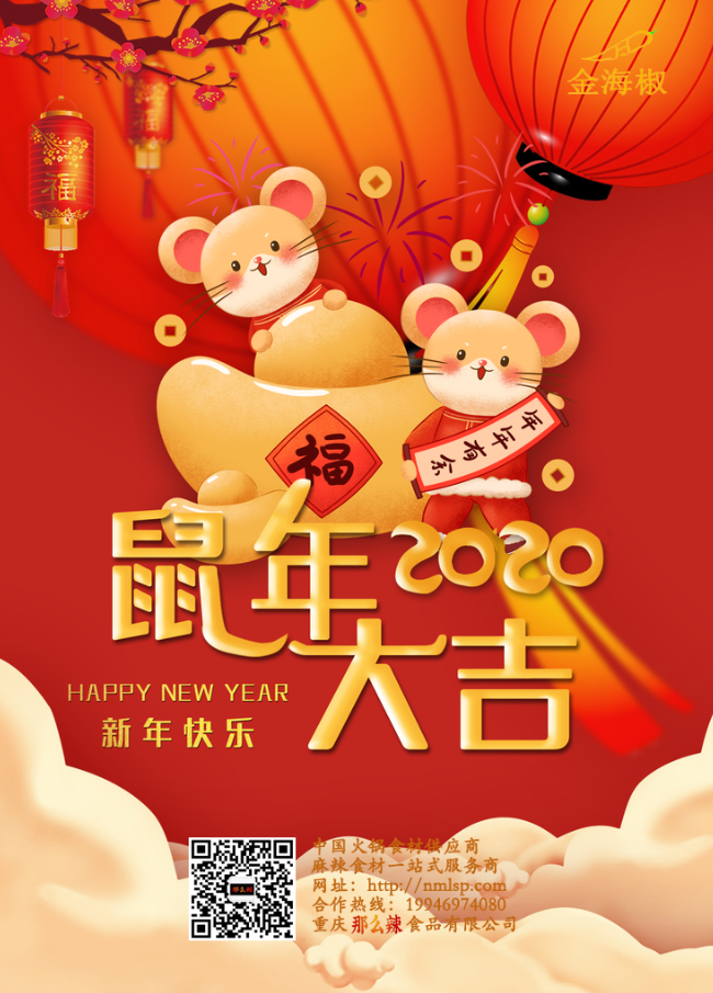 那么辣食品祝?;锇閭冃麓宏H家快樂(lè),鼠年大吉!